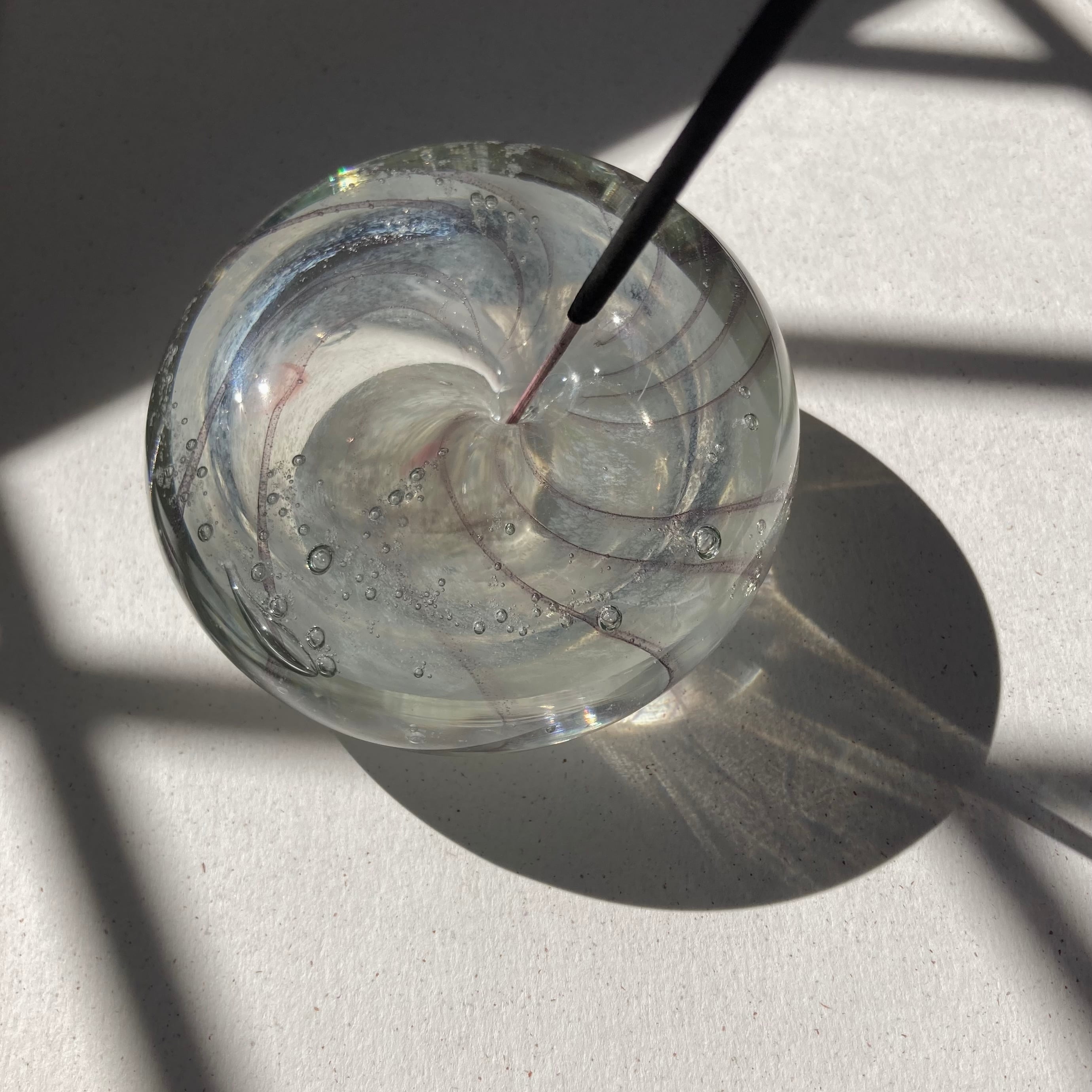 揺らぐ煙とともにガラスを透過する光をゆったりと眺めていたくなるお香たてを制作しました。