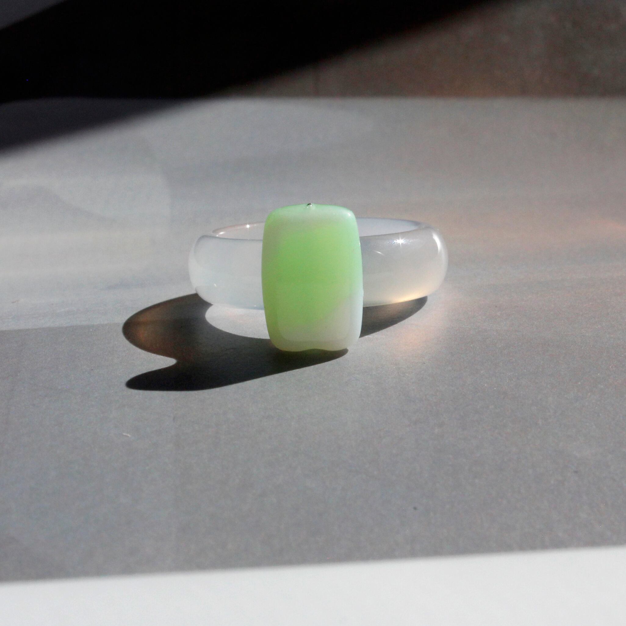 メロンソーダのような、メロン×バニラの柔らかく混ざる色合いがかわいいリング。