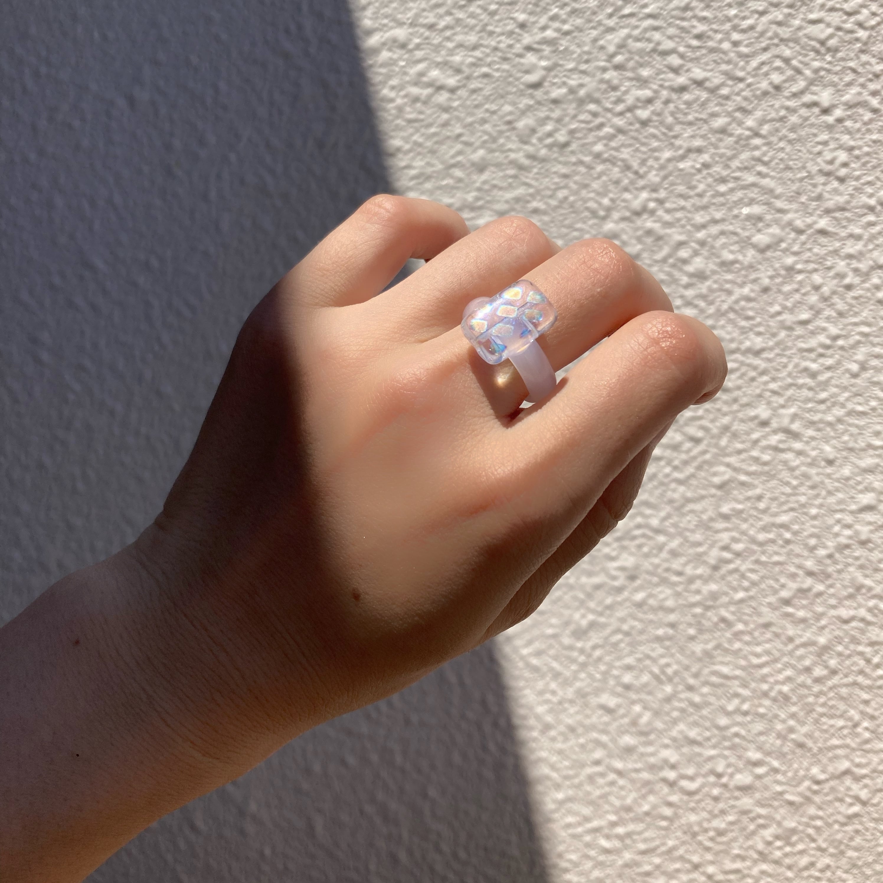 ちゅるちゅるの透明ガラスに、オパールのようにオーロラ色に輝くSugarリング。