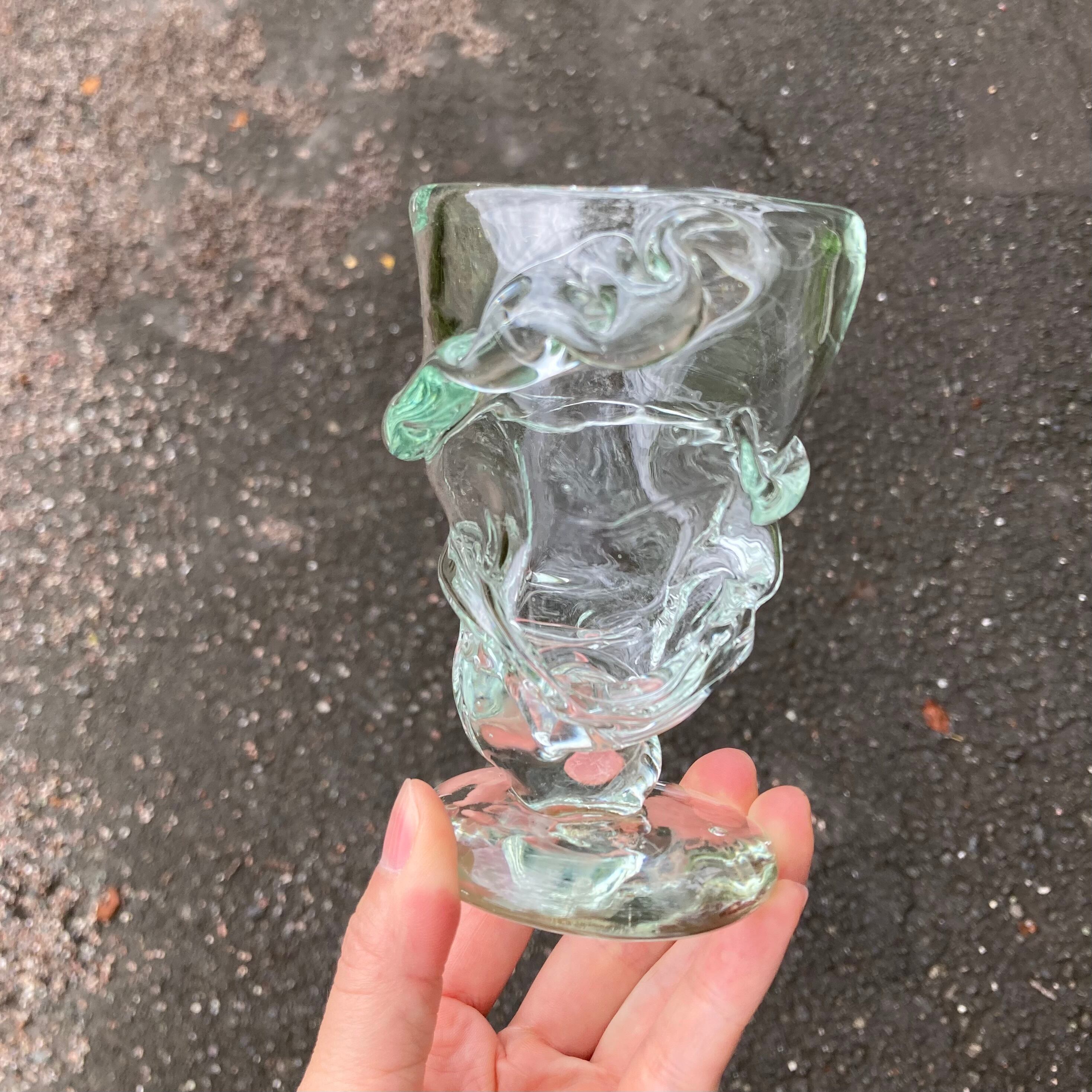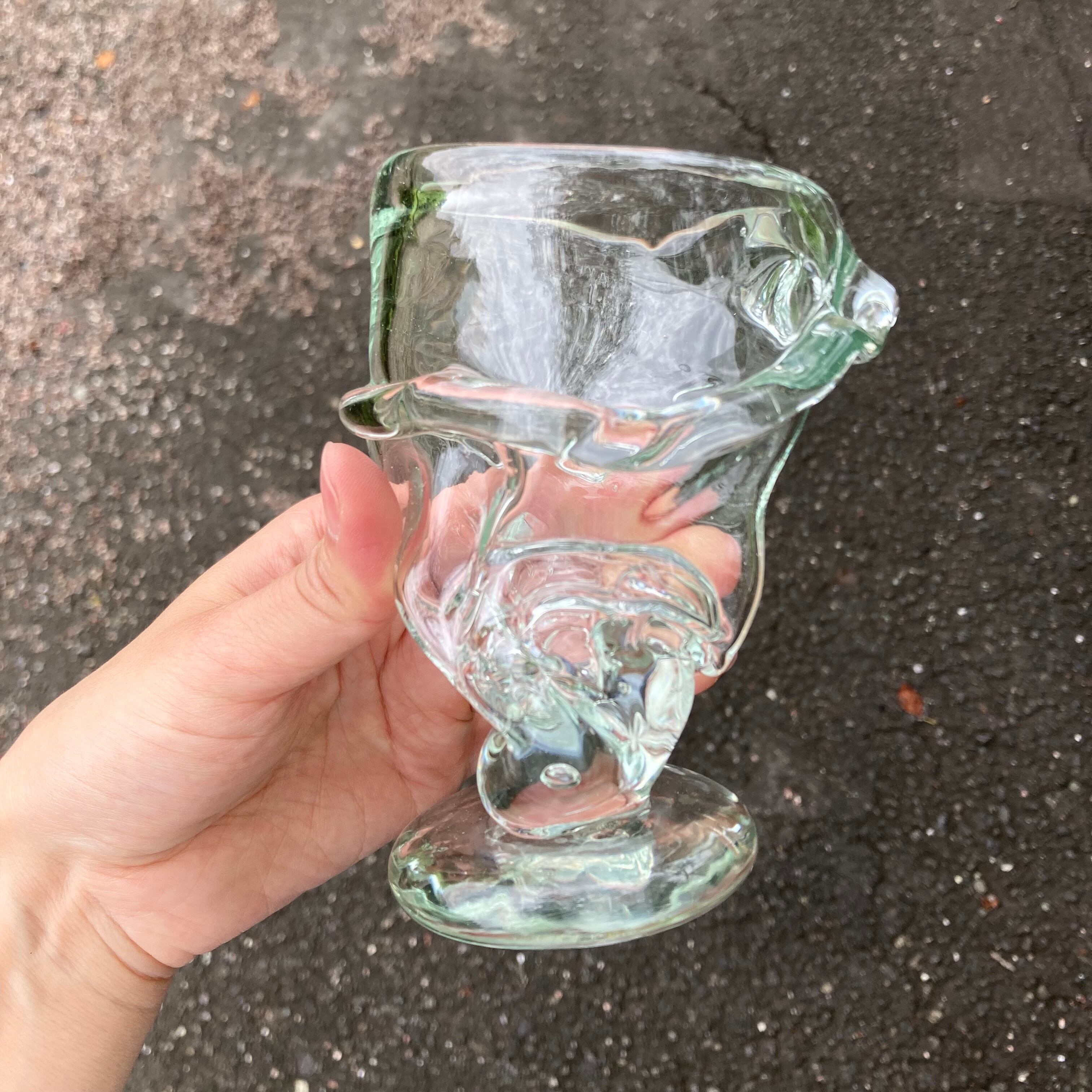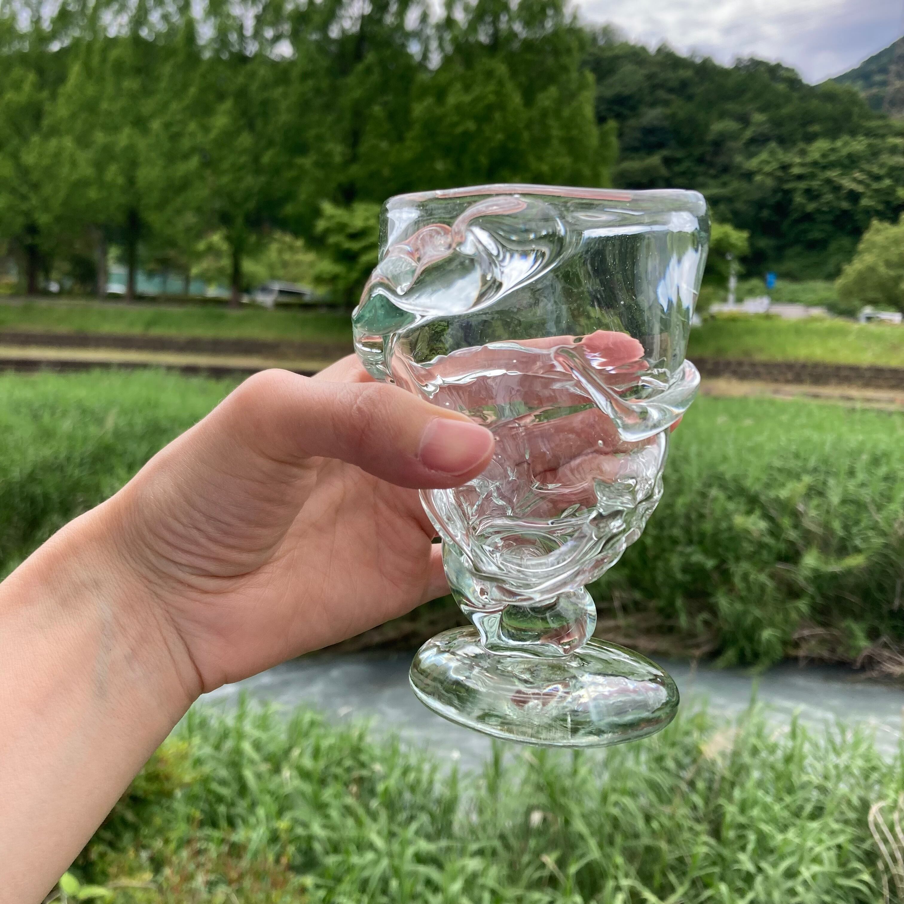 うっすらグリーンの透明感と、たゆたうフォルムに光がとけるグラス。