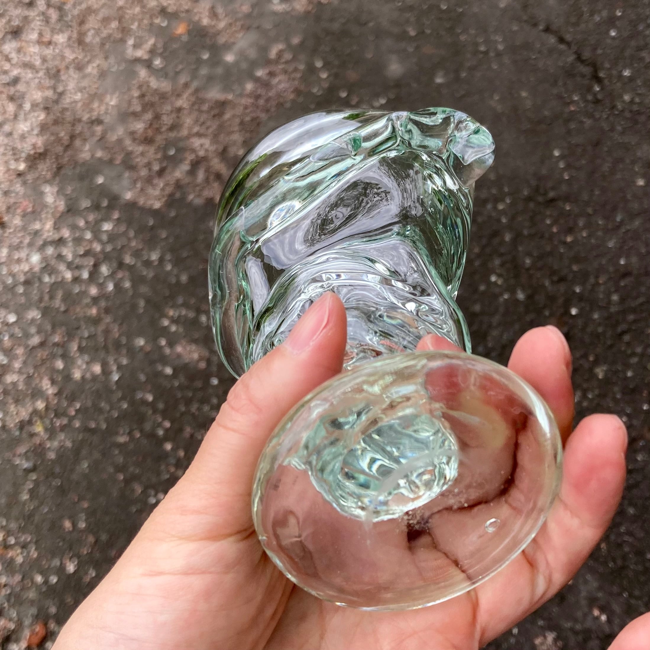再生ガラスならではのうっすら淡いグリーンの重なりで