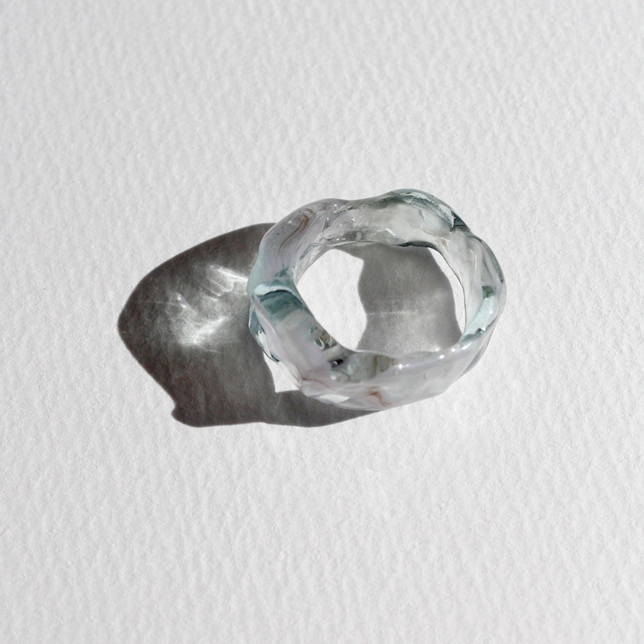 そんな日が沈んだ後の空の色をガラスリング にしました