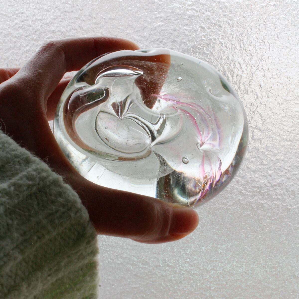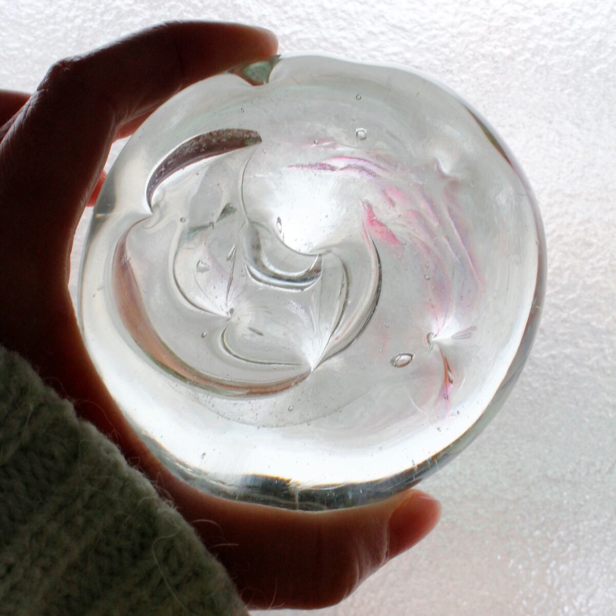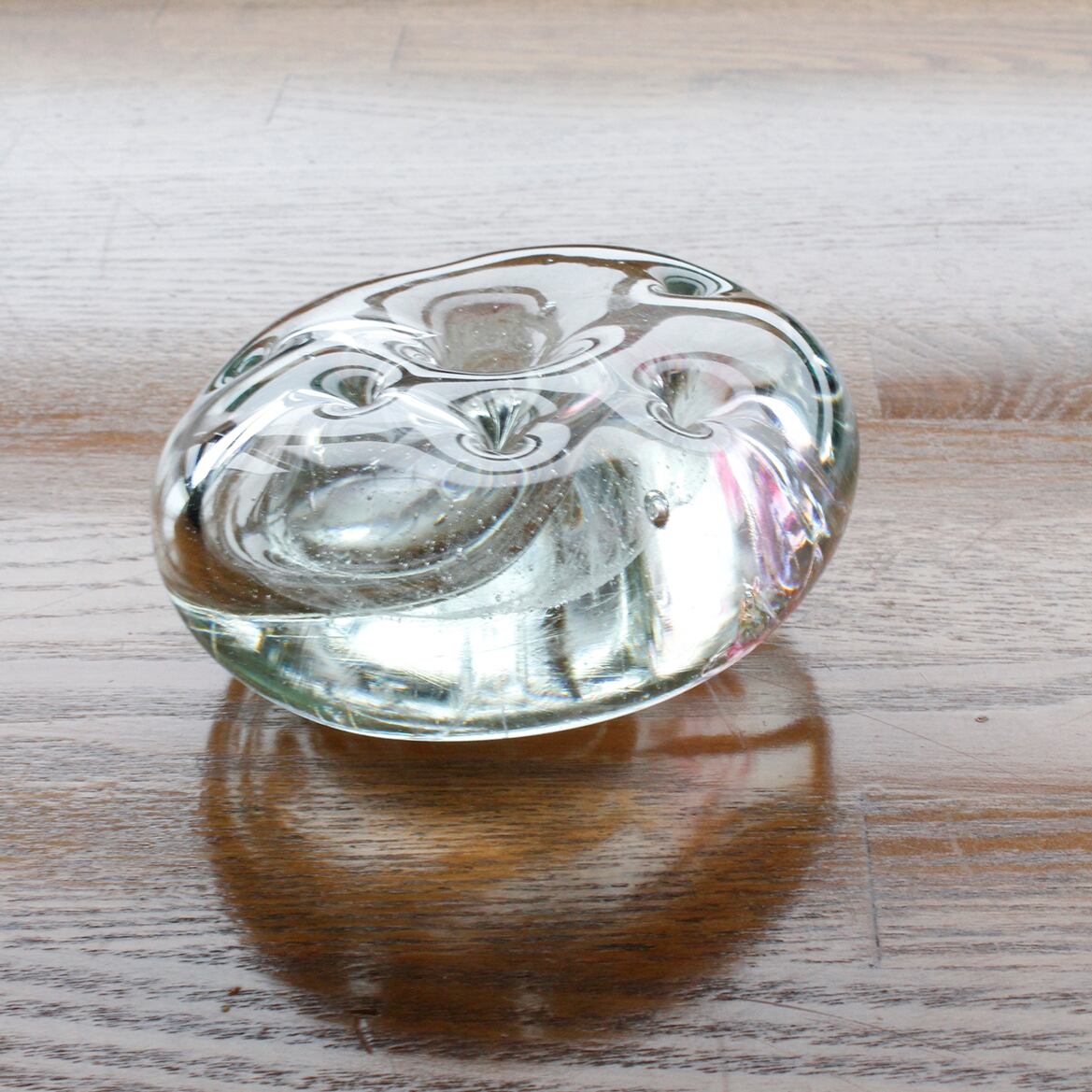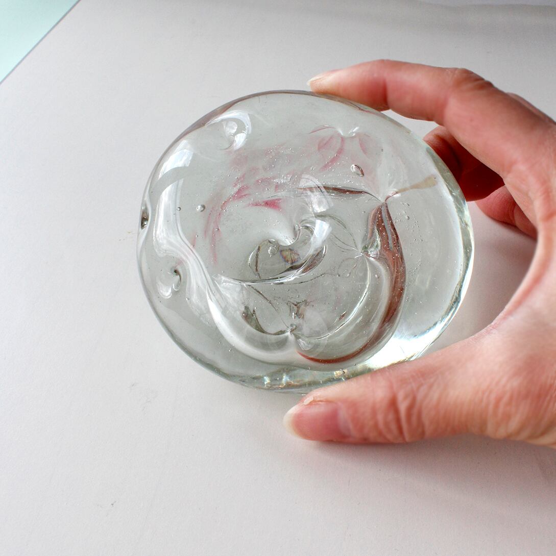 ガラスの中で柔らかくきらめく気泡のヴェールは角度によって表情を変え、