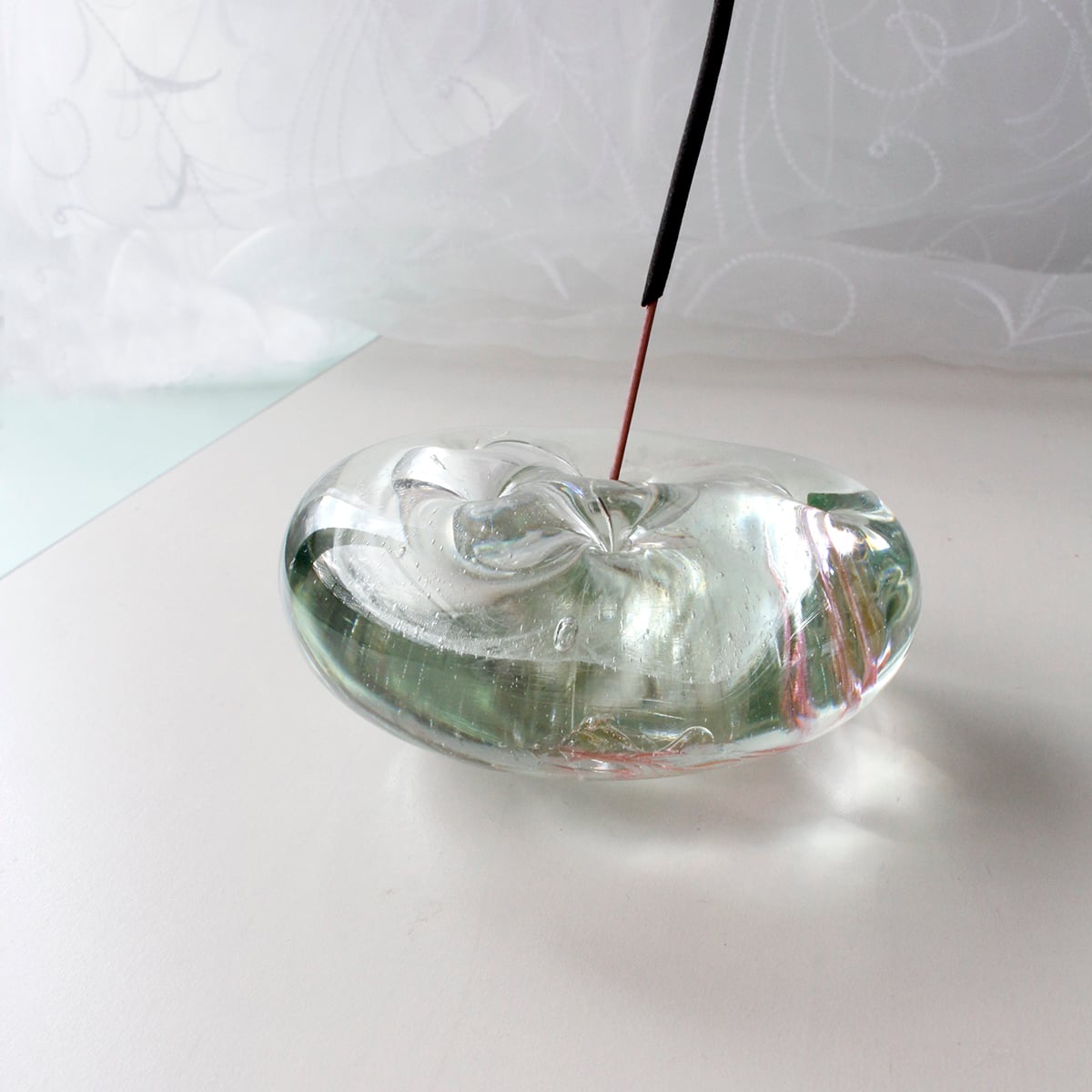 お香の香りを楽しみながら、揺らぐ煙とともにガラスを透過する光をゆったりと眺めていたくなる-----