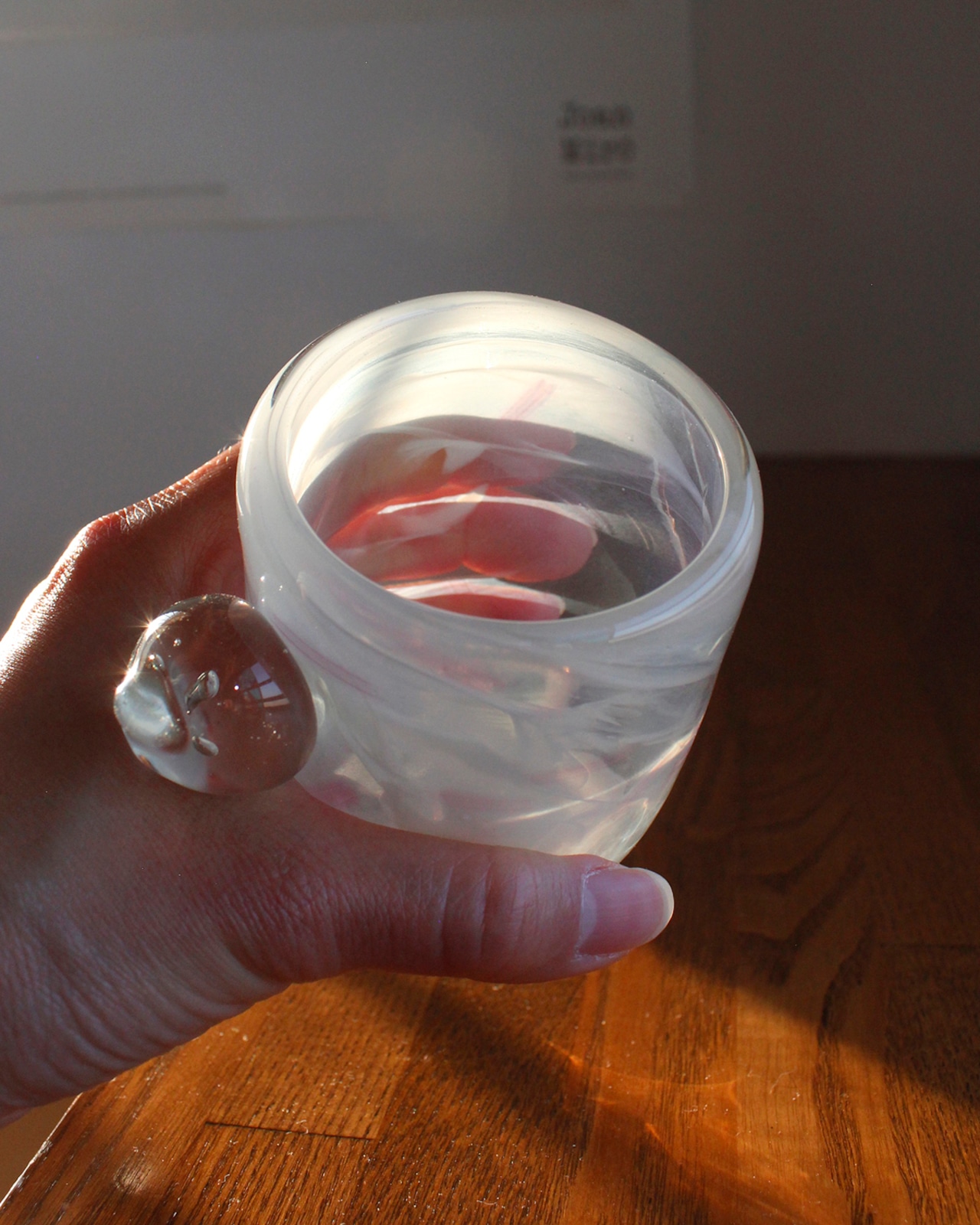 Pom Mug is a tiny glass friend that captures a drop of sweet-and-sour excitement, blending your favorite drink into a soft, sparkling melody of colors.