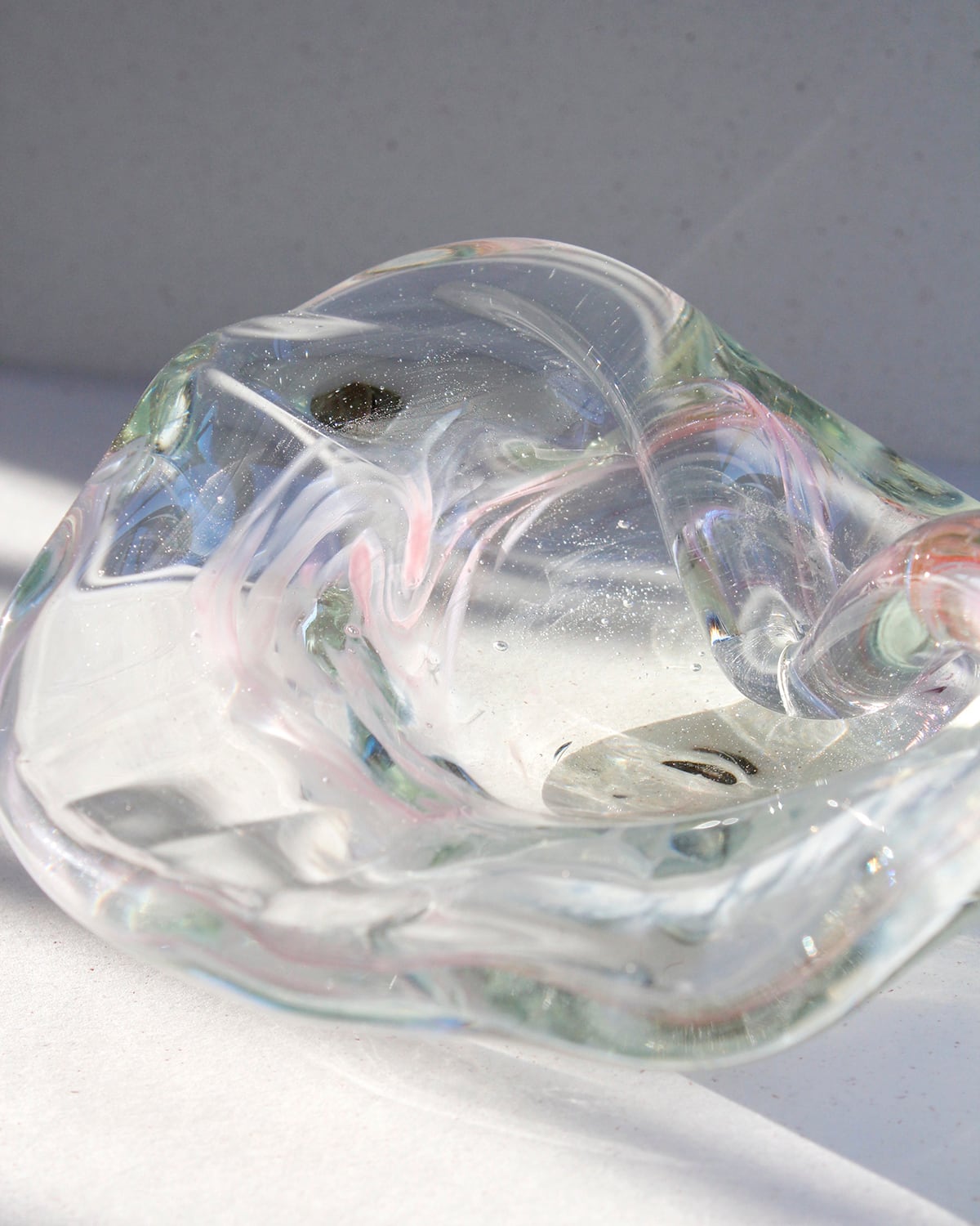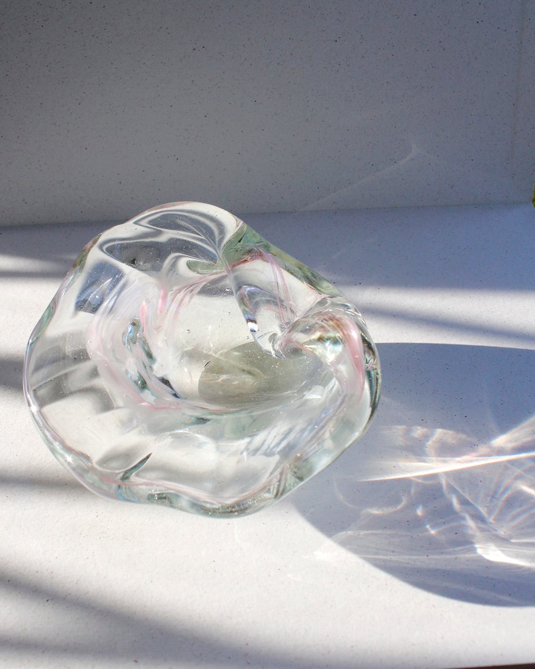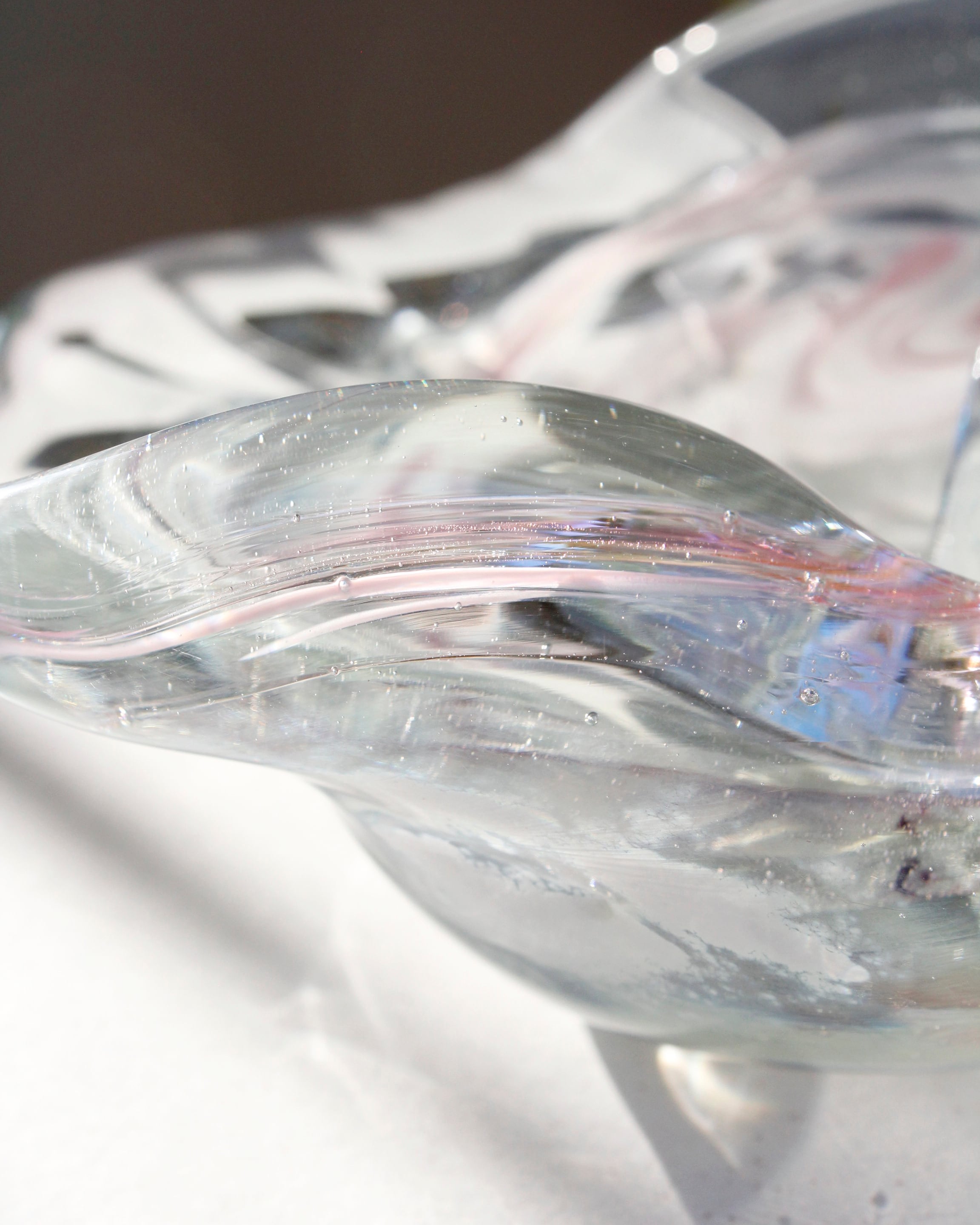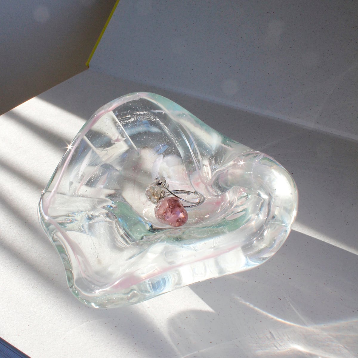 光があたるとガラスが煌めき、