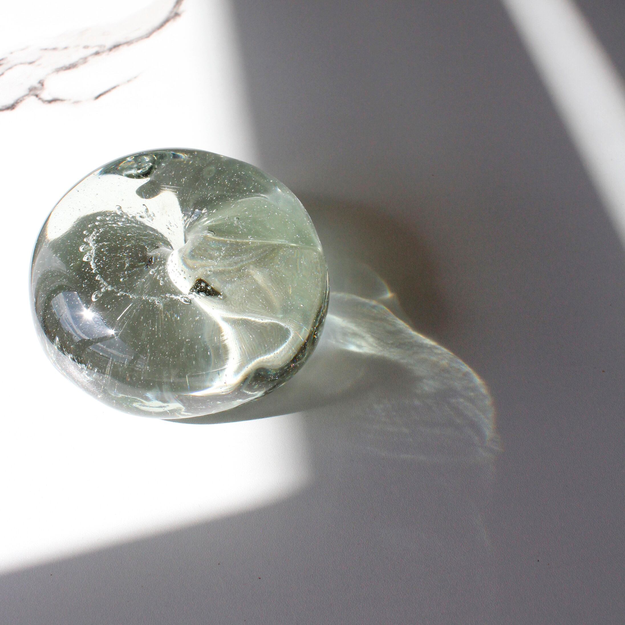光があたると光を透過したガラスがきらきらと煌めき、窓からの光の差し込み方で刻々とかわる美しい表情を楽しめます。