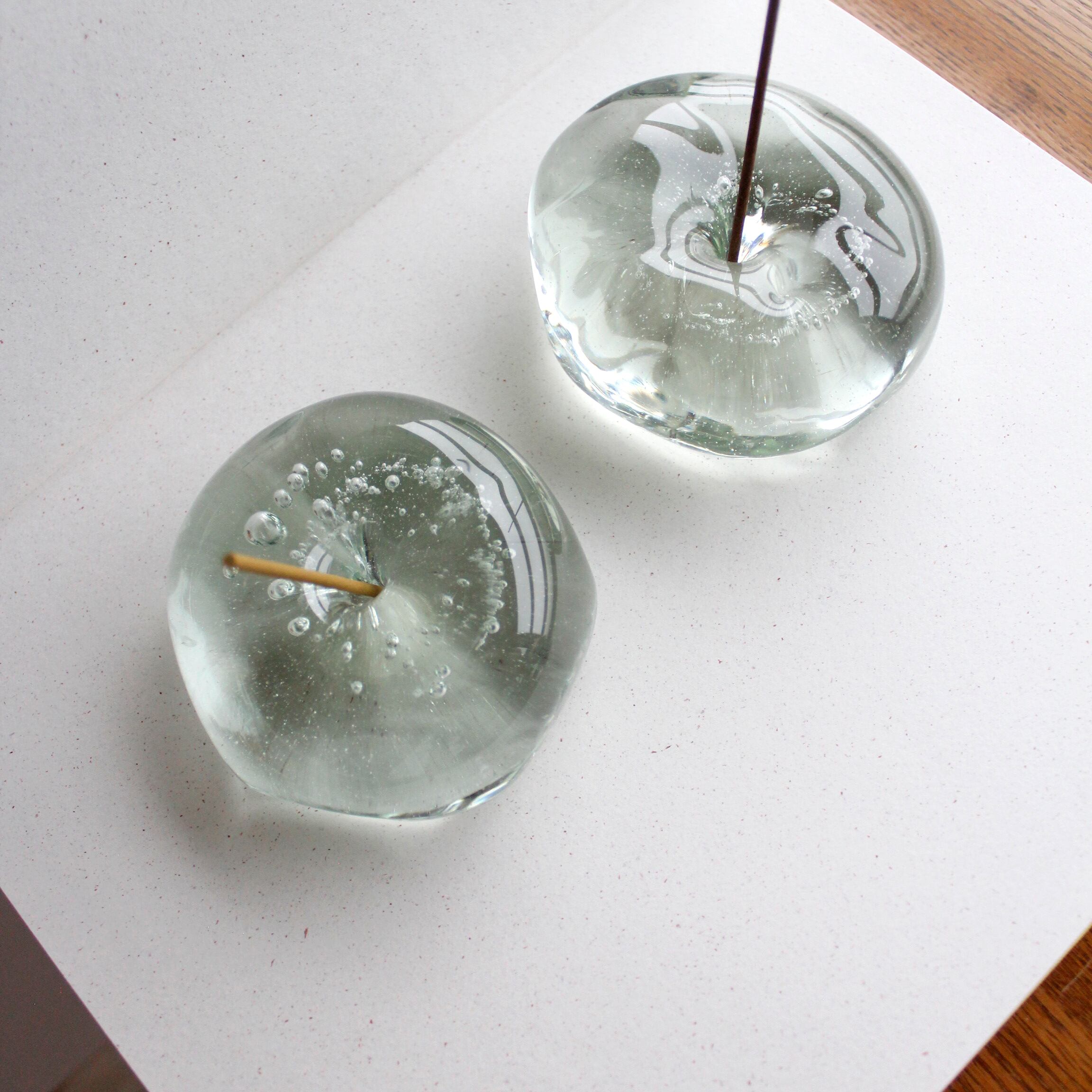 お香の香りを楽しみながら、揺らぐ煙とともにガラスを透過する光をゆったりと眺めていたくなる、とろける氷をイメージして製作したお香たてです。