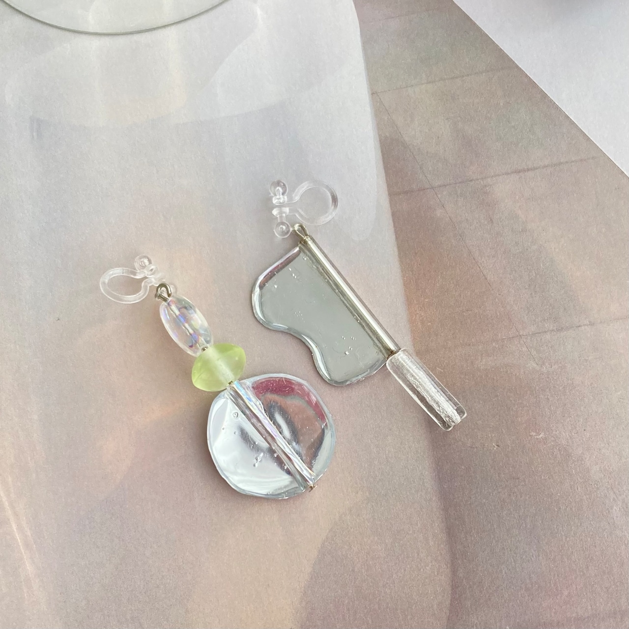 ゆらゆらと揺れてきらめくモビールみたいなフォルムがアートなデザインのイヤリングです。